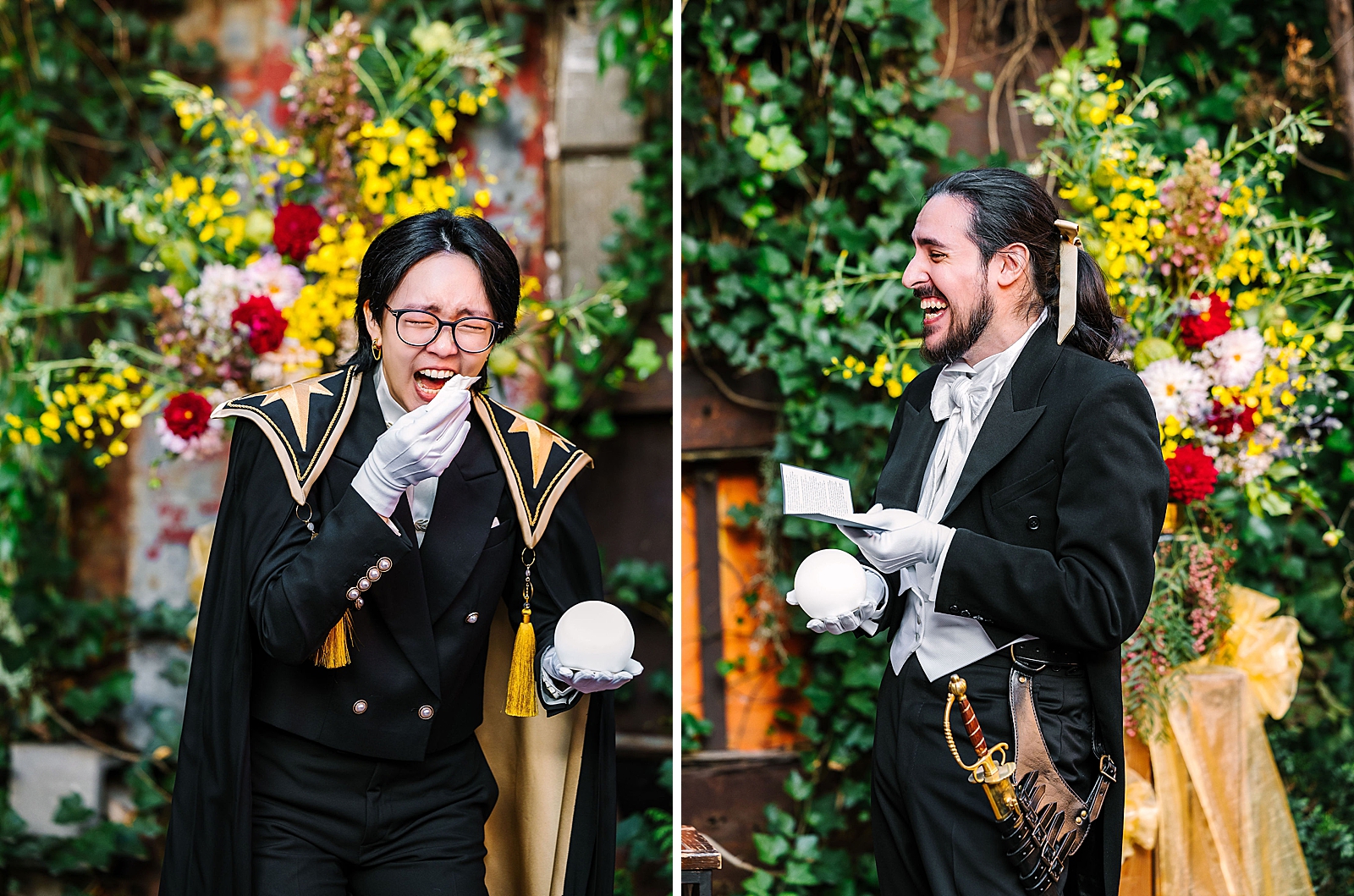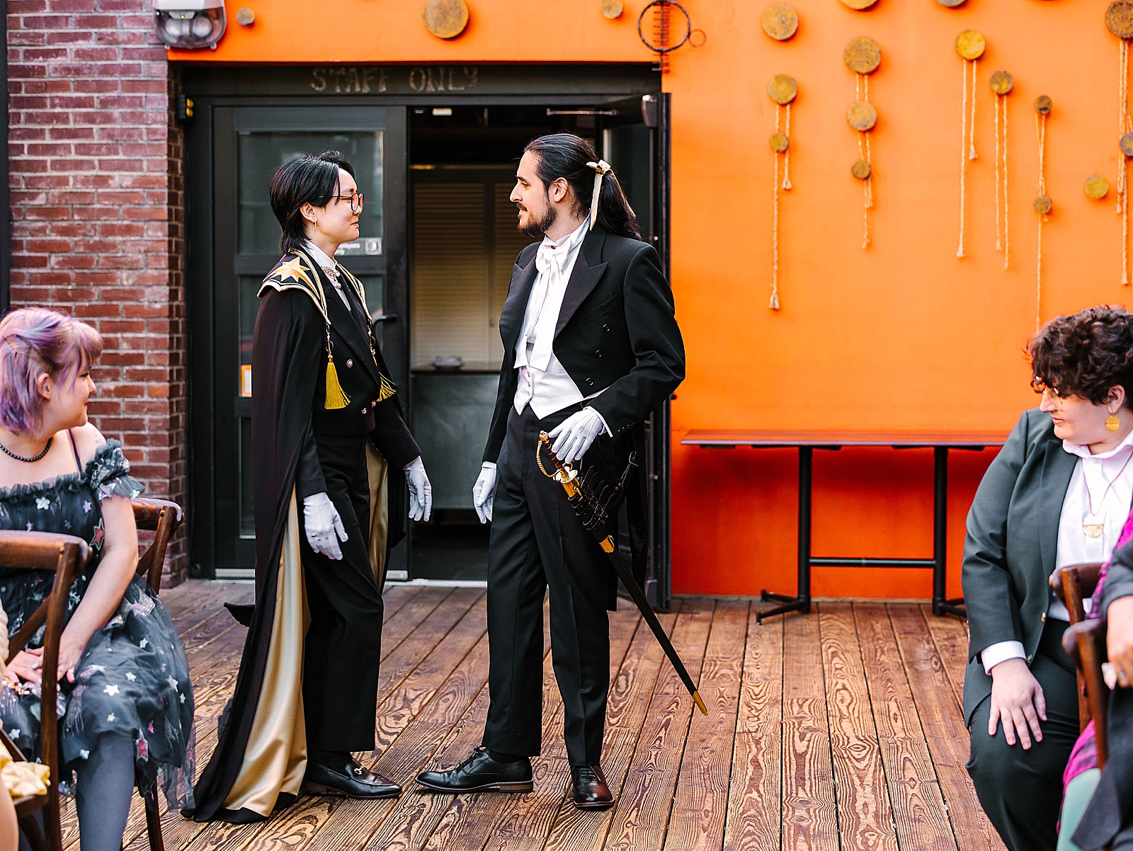 After some portraits in the neighborhood and around the venue, they prepared for their star ceremony. Rather than traditional “bride” or “groom” titles, Kou was referenced as The Prince and Eric was The Knight. Their wedding party was referred to as The Entourage. During the ceremony, they had a choreographed entrance and exchanged vows via star orbs. The star ceremony was so sweet and unique! I loved how personalized every aspect of the ceremony was.