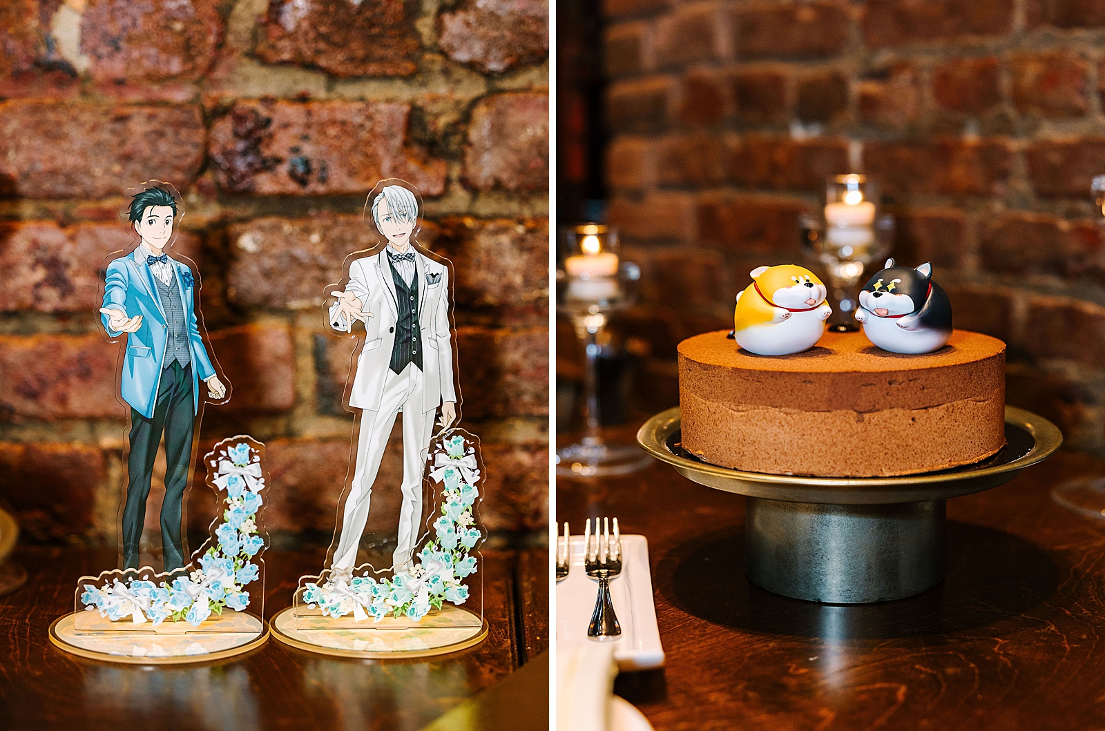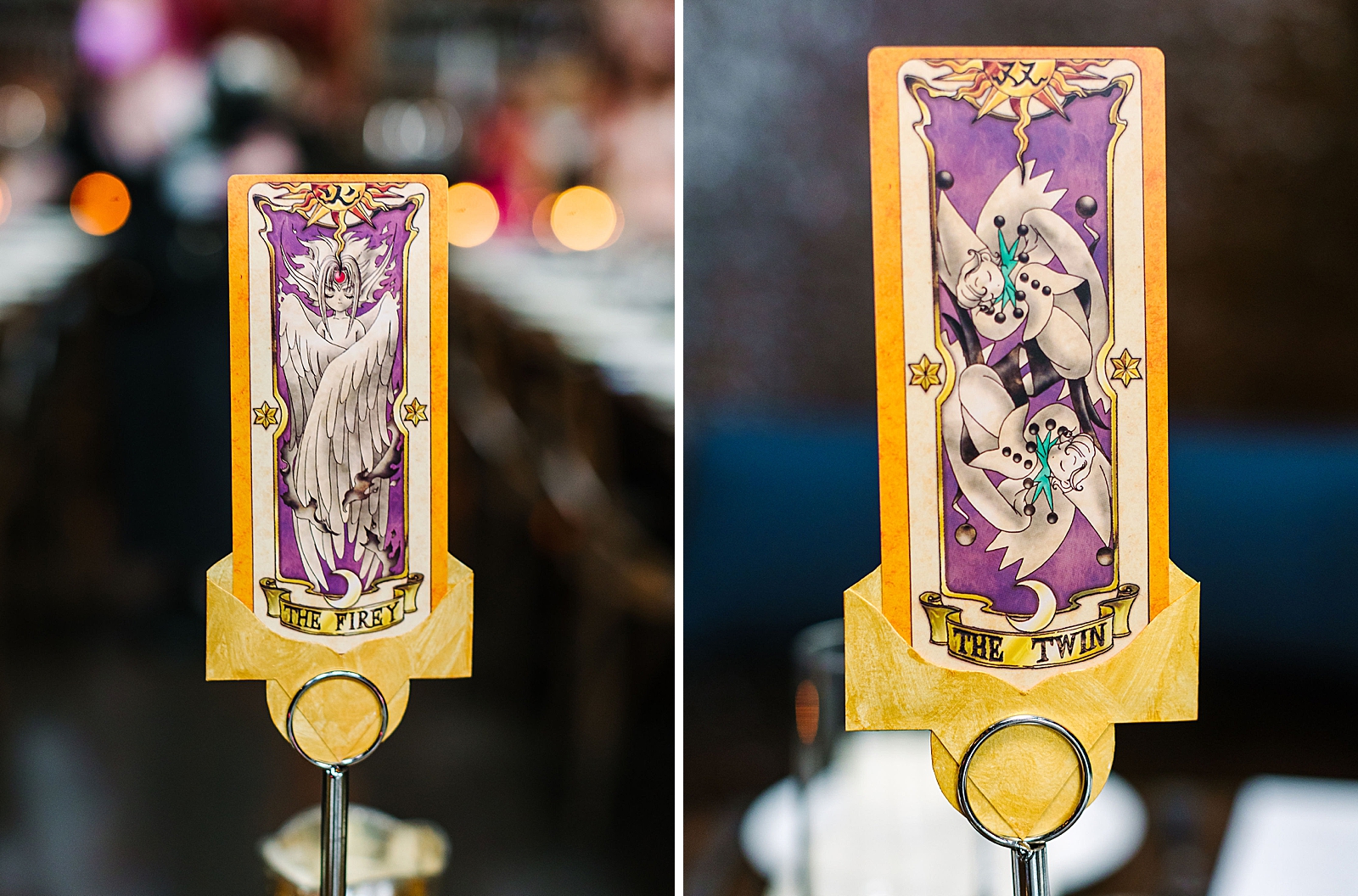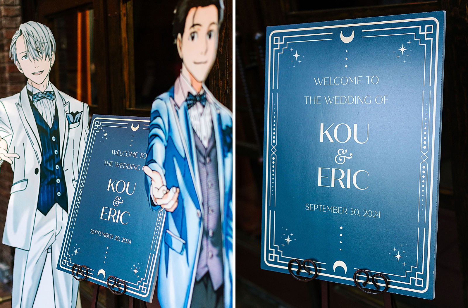 They both design their own comic books, so they had a station for guests to make their own comics for themselves or the couple. Two of their favorite anime characters greeted guests into the reception. Instead of traditional table numbers, they utilized clow cards as table markers with custom holders. Kou’s mom created the ceremony arrangements herself and they were absolutely gorgeous.