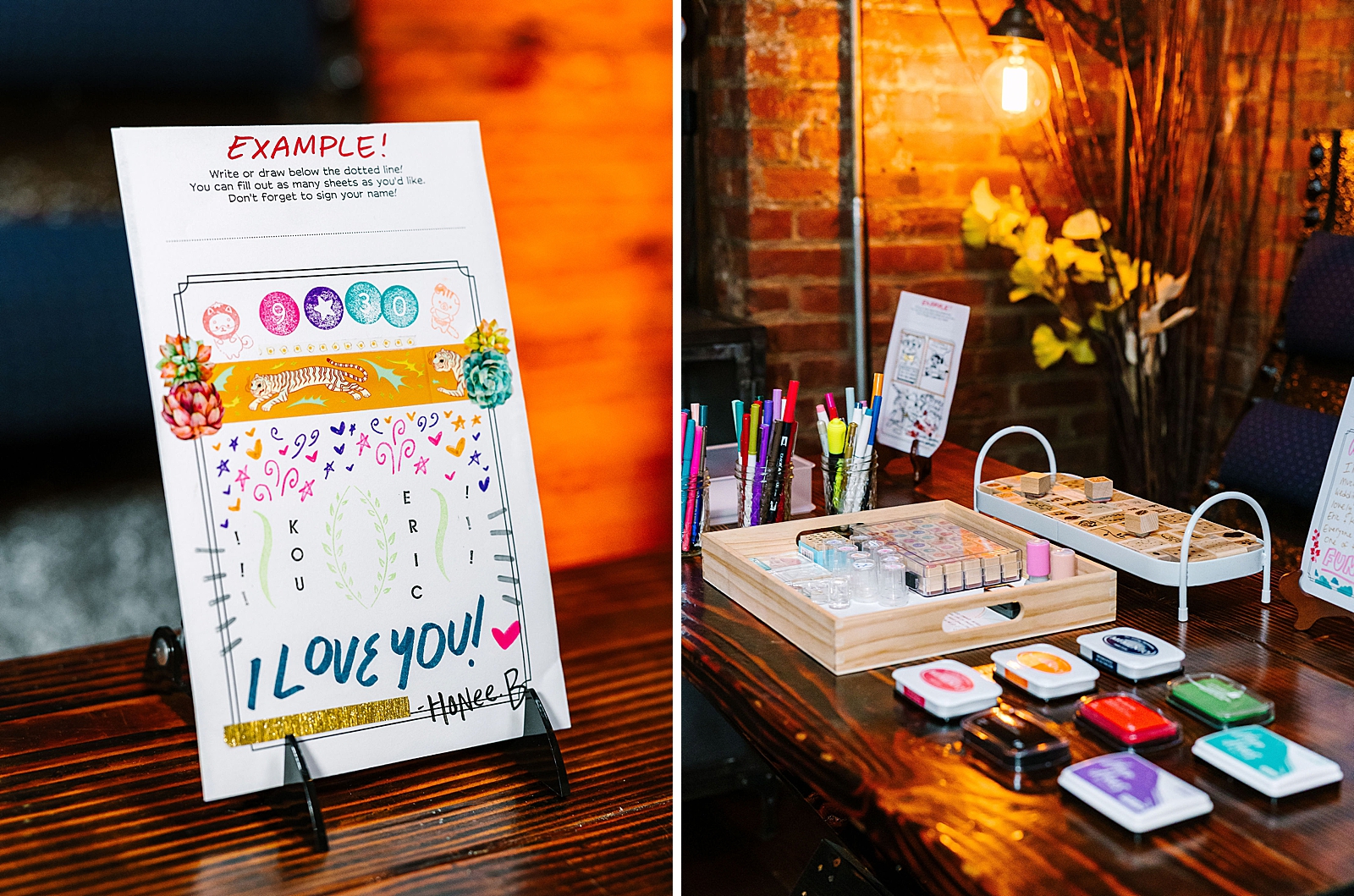 Eric and Kou are both graphic artists who met in art school, so naturally, the reception was full of nods to their artistic side.