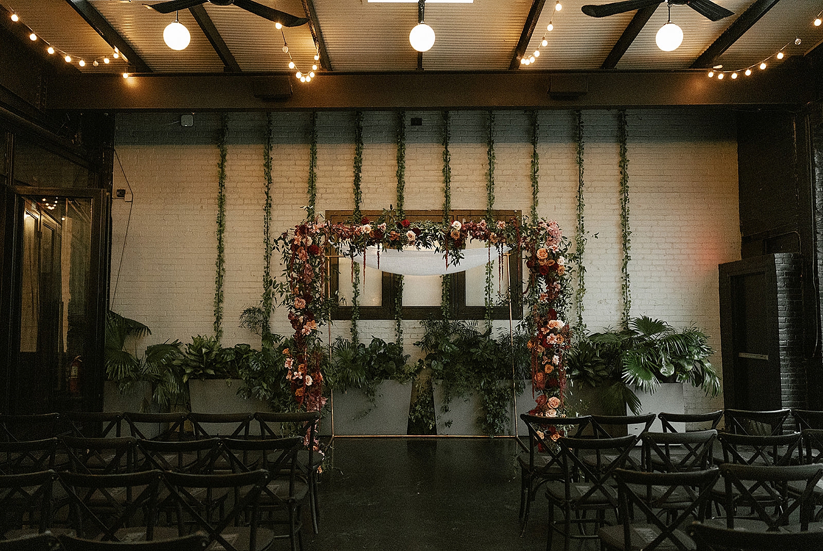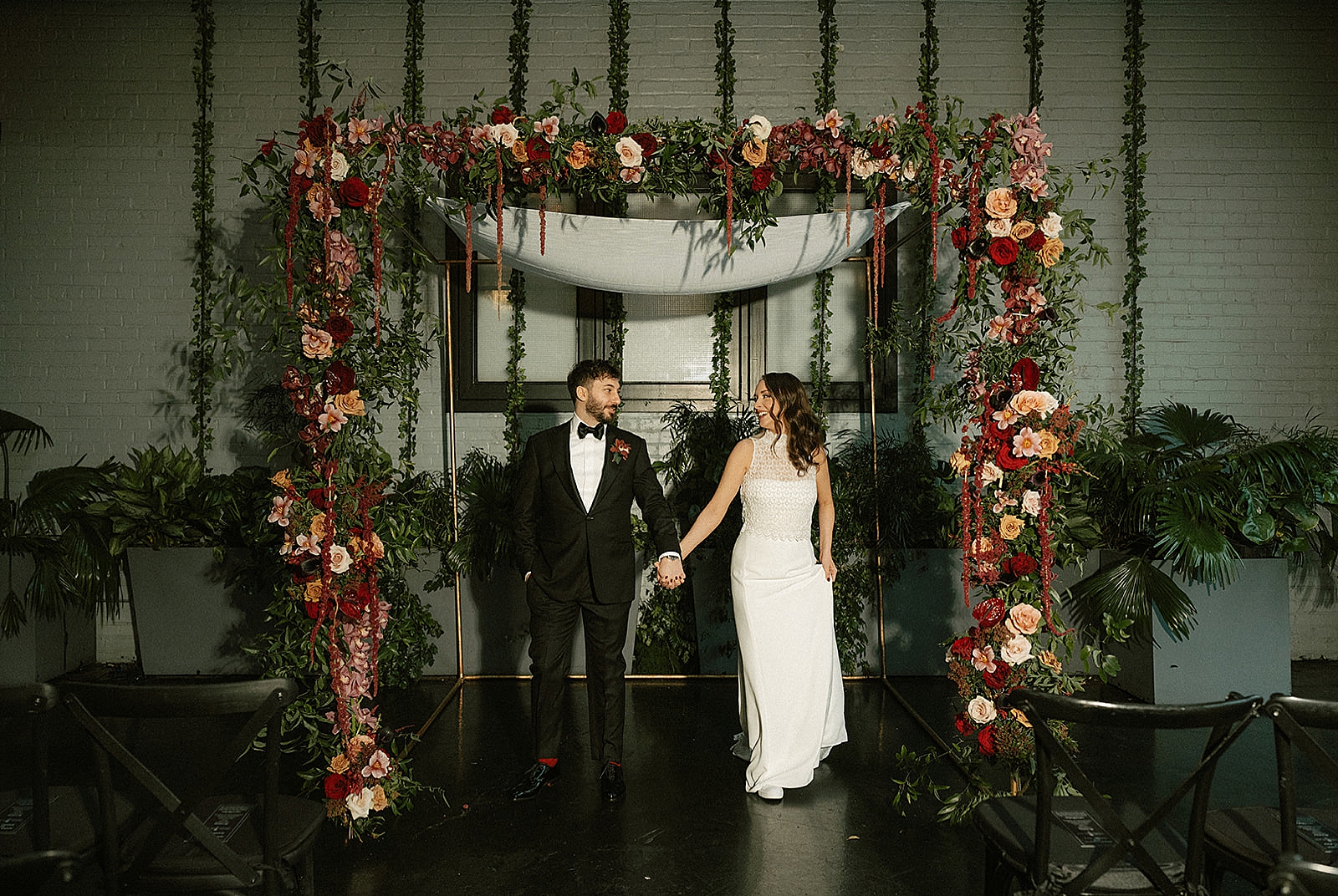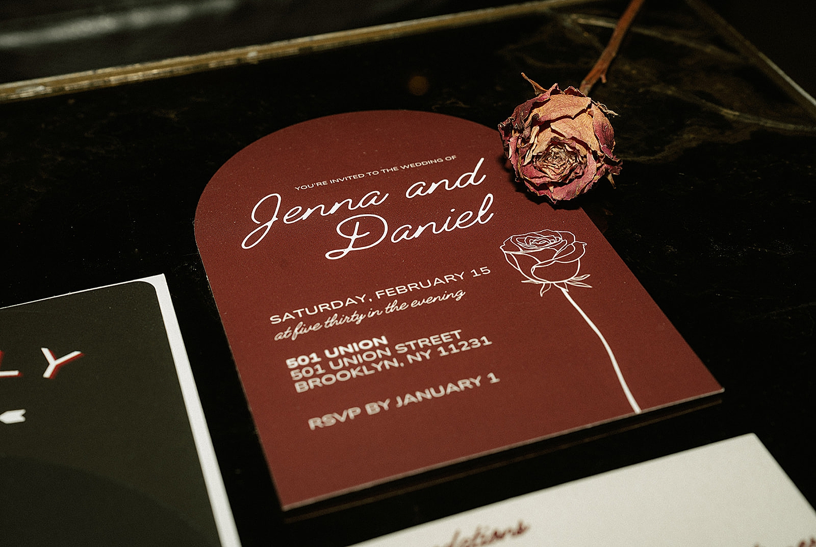 As an NYC wedding planner, I feel very lucky to get to work with the coolest couples in the city. When I first met Jenna and Daniel, we instantly clicked. Fellow theater lovers, we both had a great appreciation for the dramatic and for tearing up a dance floor. They had their hearts set on a moody, industrial wedding over Valentine’s weekend, so naturally, 501 Union was the perfect setting.