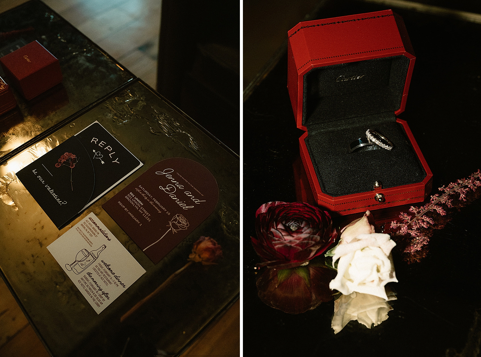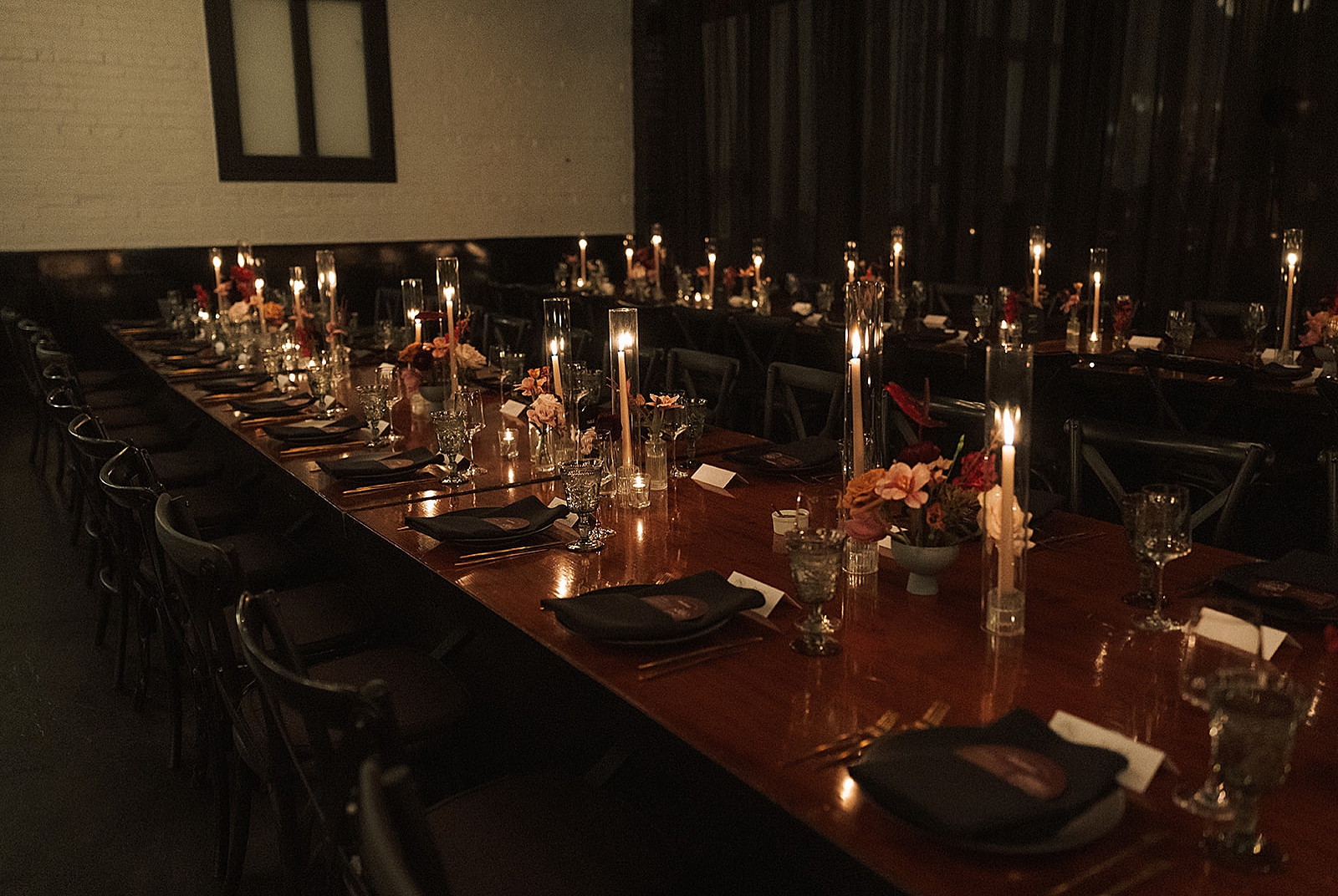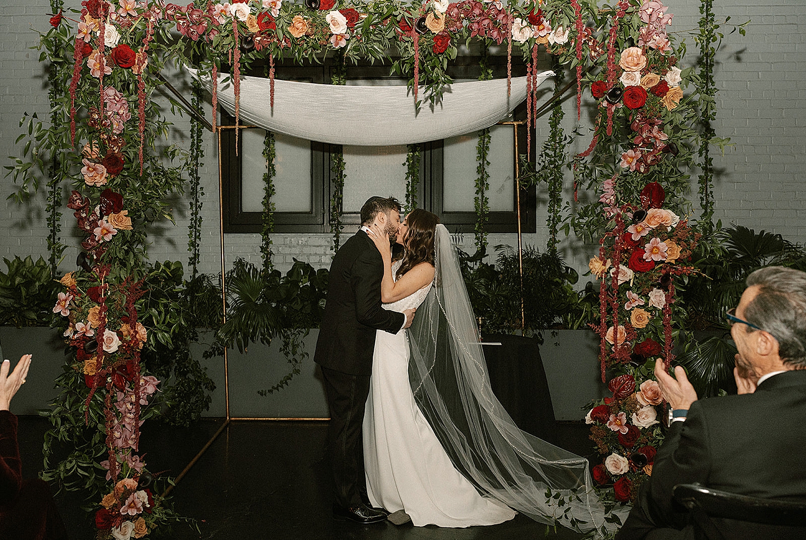 As an NYC wedding planner, I feel very lucky to get to work with the coolest couples in the city. When I first met Jenna and Daniel, we instantly clicked. Fellow theater lovers, we both had a great appreciation for the dramatic and for tearing up a dance floor. They had their hearts set on a moody, industrial wedding over Valentine’s weekend, so naturally, 501 Union was the perfect setting.