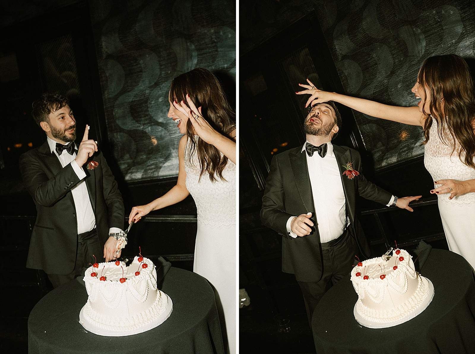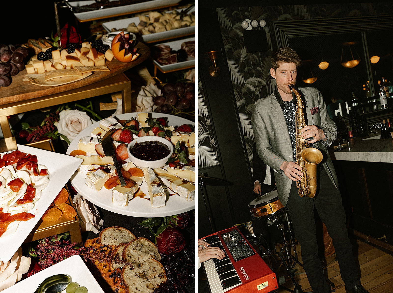 Luckily, there is no shortage of great vendors here in the city. We were able to put together the absolute dream team for their day. Jenna and Daniel’s top priority was hospitality for their guests and making sure they were well taken care of and having a blast. Jillicious Foods was the perfect fit to match this cozy, yet high touch atmosphere they craved. For dessert, Blair from Velvet Valley created the most beautiful, and appropriately shaped, wedding cake for the newlyweds.